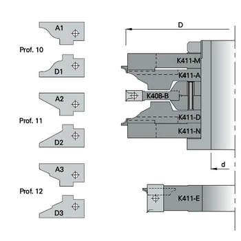 Omas Set de freze pentru producția ușilor interioare profil-contraprofil cu funcție de tăiere bagetă/locaș sticlă.